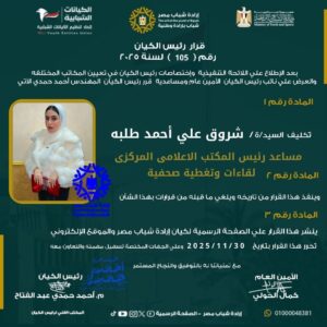 لم تكن طموحات شروق علي محصورة في النطاق المهني الخاص فحسب، بل امتدت لخدمة المجتمع الشبابي من خلال وزارة الشباب والرياضة. تشغل شروق منصب مساعد رئيس المكتب الإعلامي المركزي بكيان “إرادة شباب مصر”، وهو الدور الذي تساهم من خلاله في صياغة الرسائل الإعلامية الموجهة للشباب، ودعم المبادرات الوطنية التي تهدف إلى تمكين الكوادر المصرية الصاعدة.
